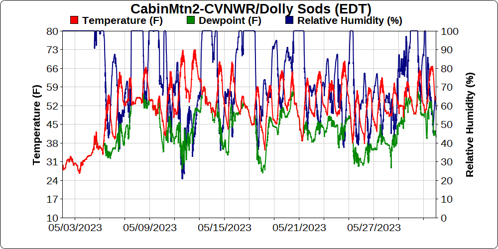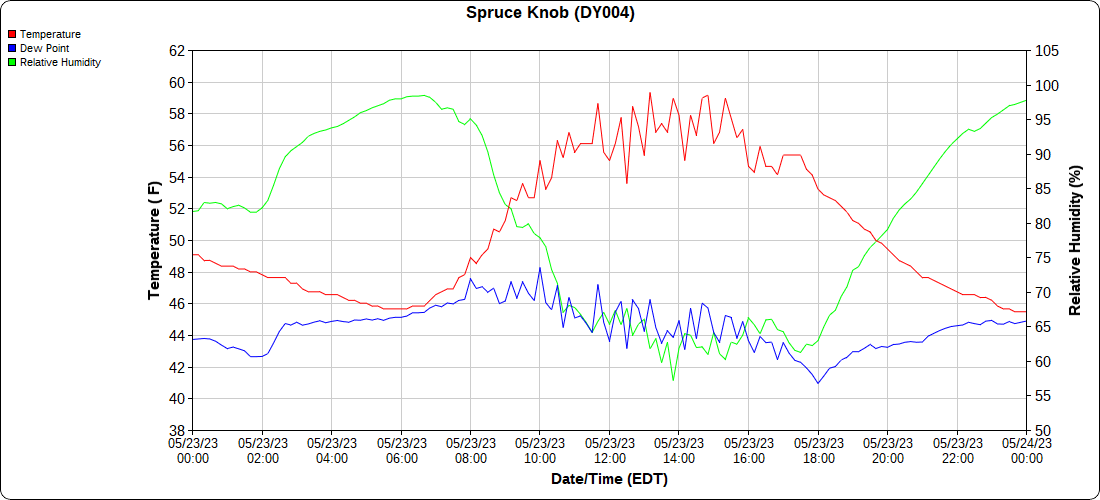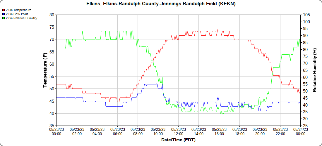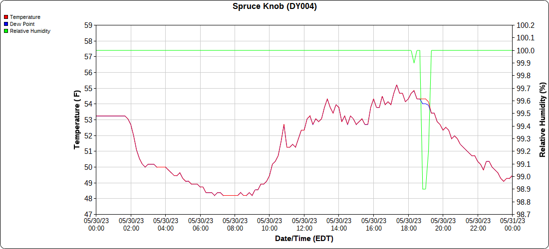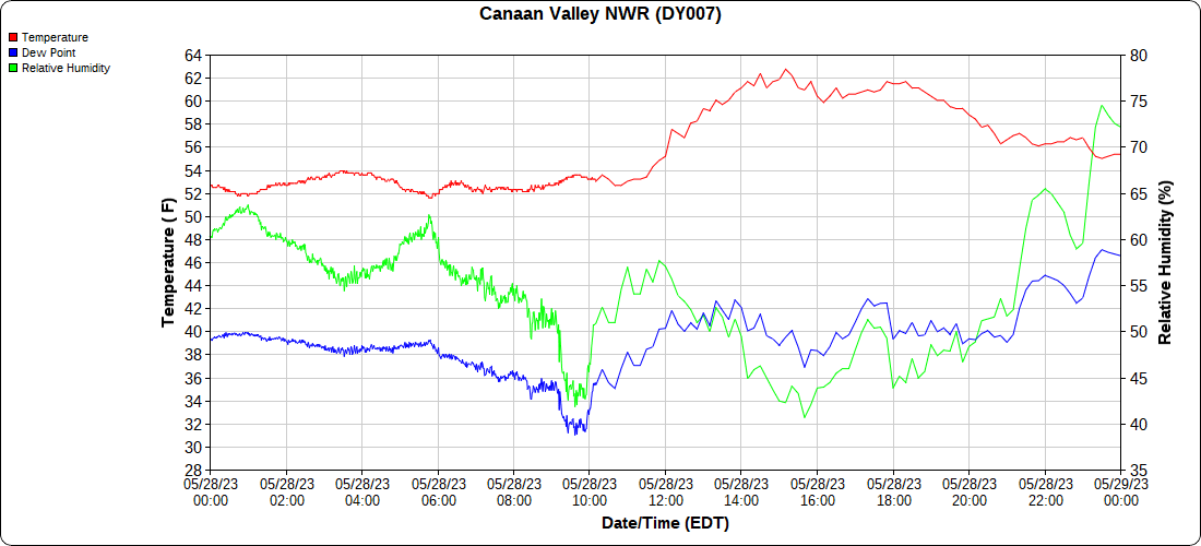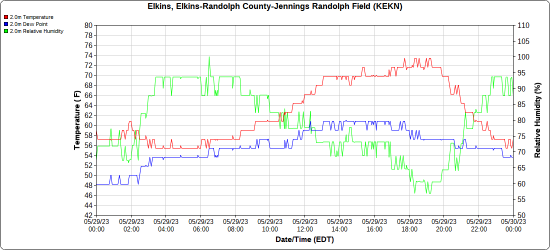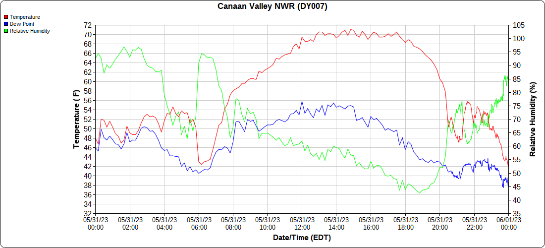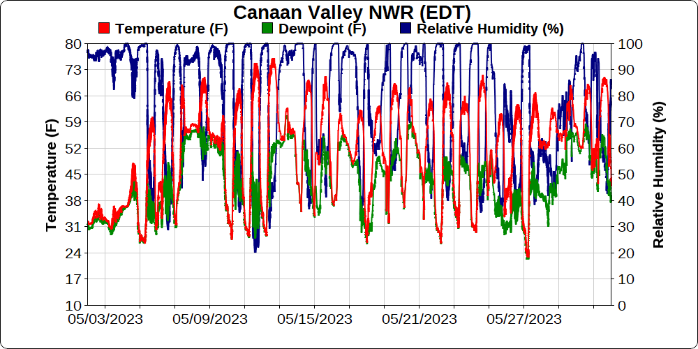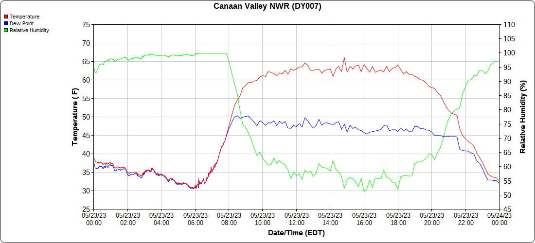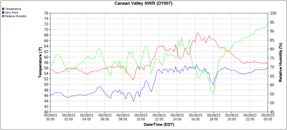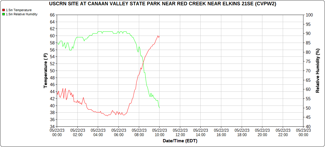 Dy007-Canaan Valley Refuge 3150′, Dy002-Cabin Mt at Bald Knob 4350′, Dy003-Cabin Mt-Western Sods 4035′, Dy004-Spruce Knob 4820′, Cvpw2-Climate Reference Network Canaan 3380′, KW99-Petersburg Grant County Airport 961, K2G4 Garrett County Airport 2933′, KCBE Cumberland Airport 774′, KEKN Elkins Airport 1985′, KMGW Morgantown Airport 1227′, PMN16-Mt.Davis 3038′, KDCA-Reagan National 15′, G1472 Snowshoe 4500′, F0183 Burkes Garden 3050′