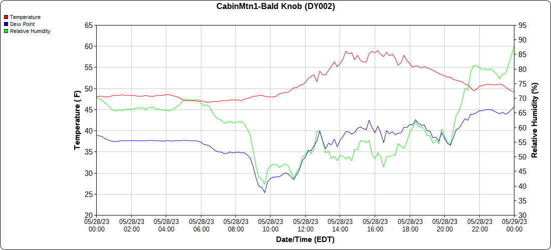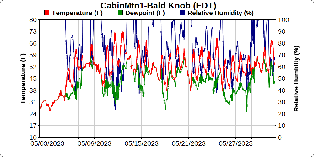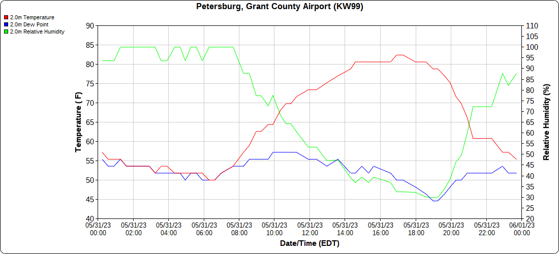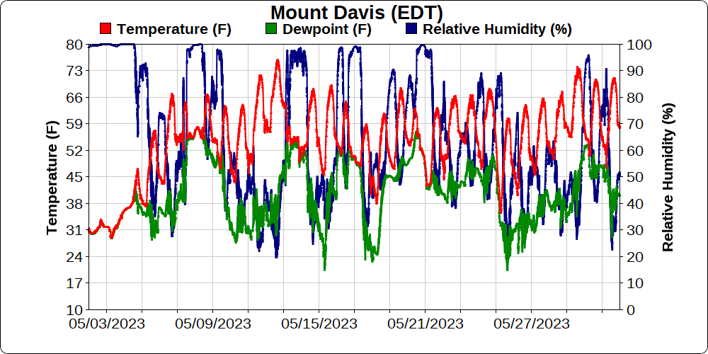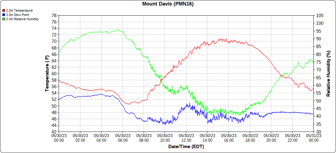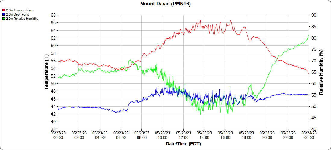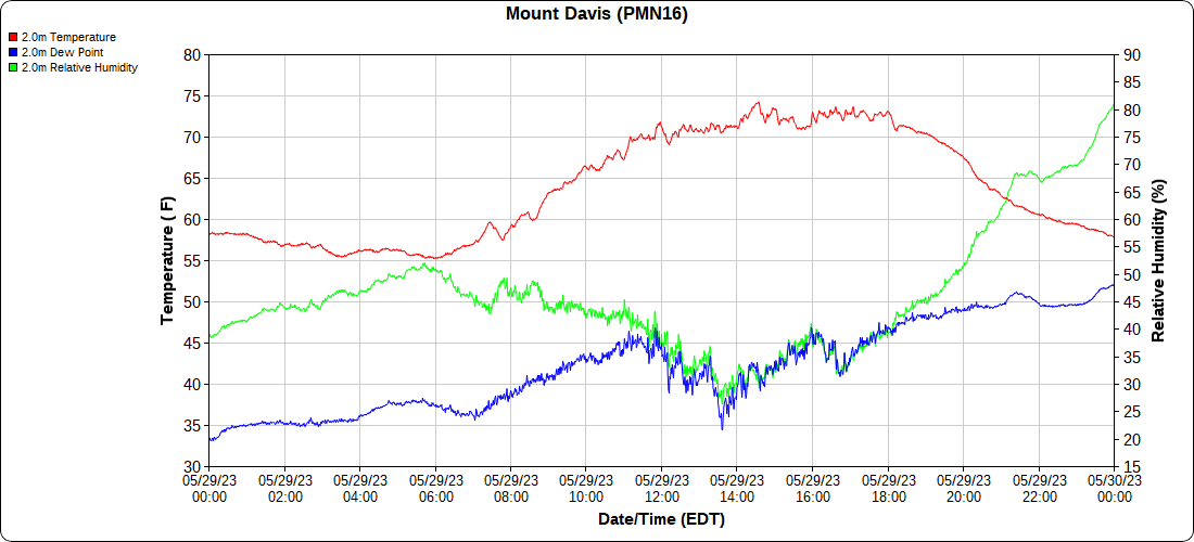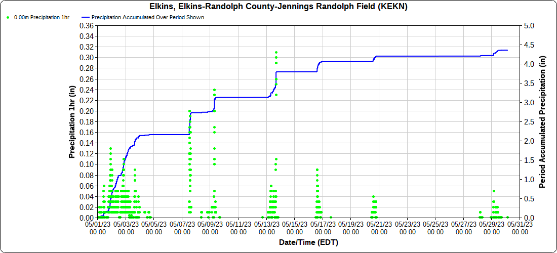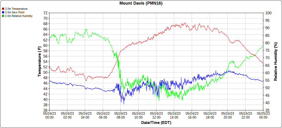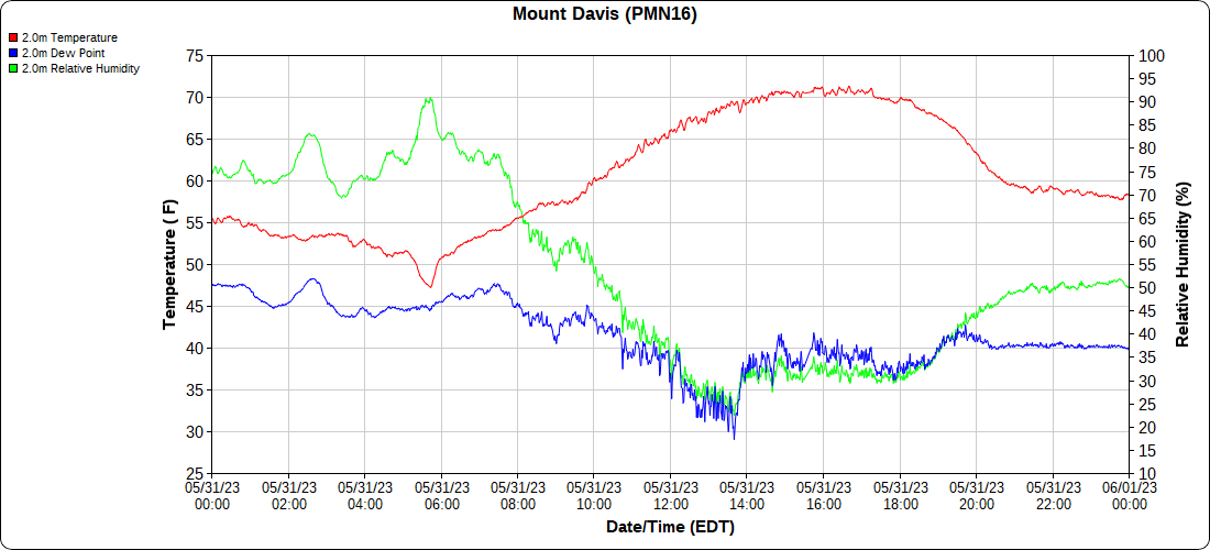 Dy007-Canaan Valley Refuge 3150′, Dy002-Cabin Mt at Bald Knob 4350′, Dy003-Cabin Mt-Western Sods 4035′, Dy004-Spruce Knob 4820′, Cvpw2-Climate Reference Network Canaan 3380′, KW99-Petersburg Grant County Airport 961, K2G4 Garrett County Airport 2933′, KCBE Cumberland Airport 774′, KEKN Elkins Airport 1985′, KMGW Morgantown Airport 1227′, PMN16-Mt.Davis 3038′, KDCA-Reagan National 15′, G1472 Snowshoe 4500′, F0183 Burkes Garden 3050′