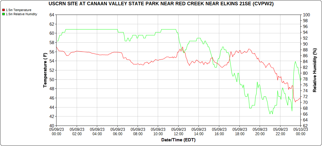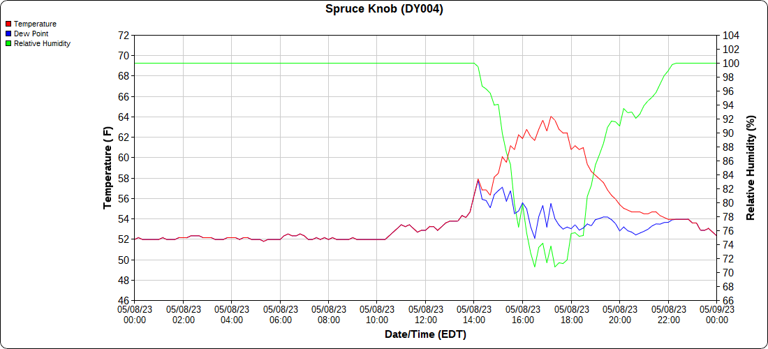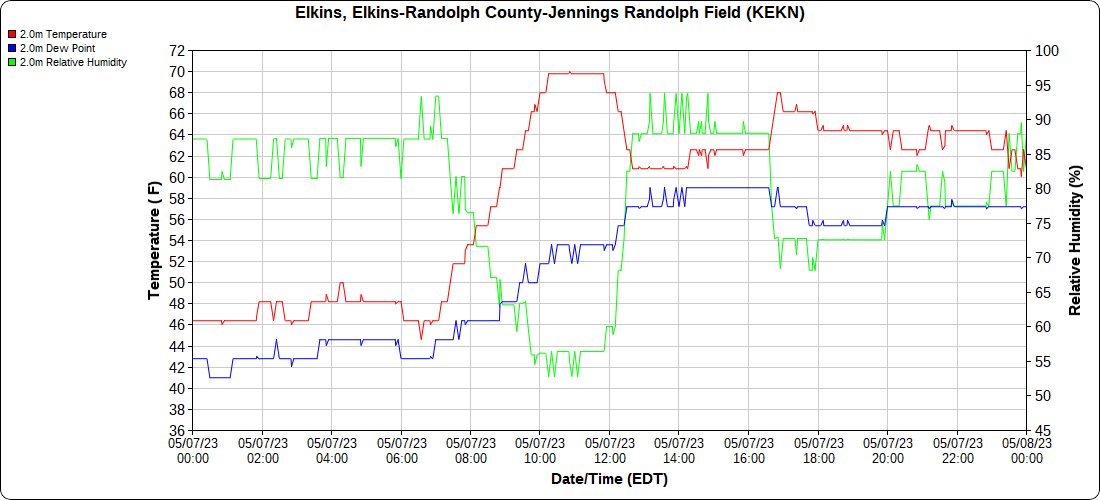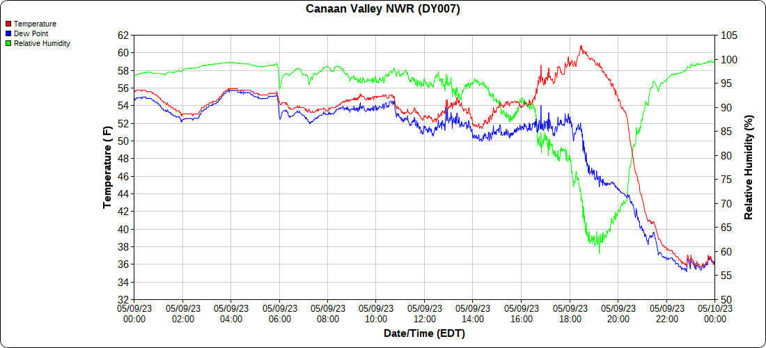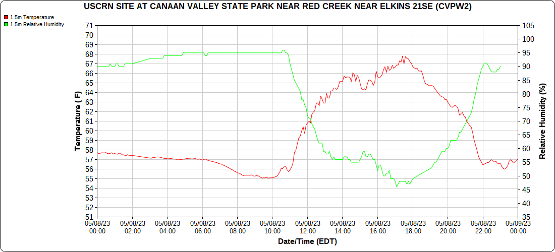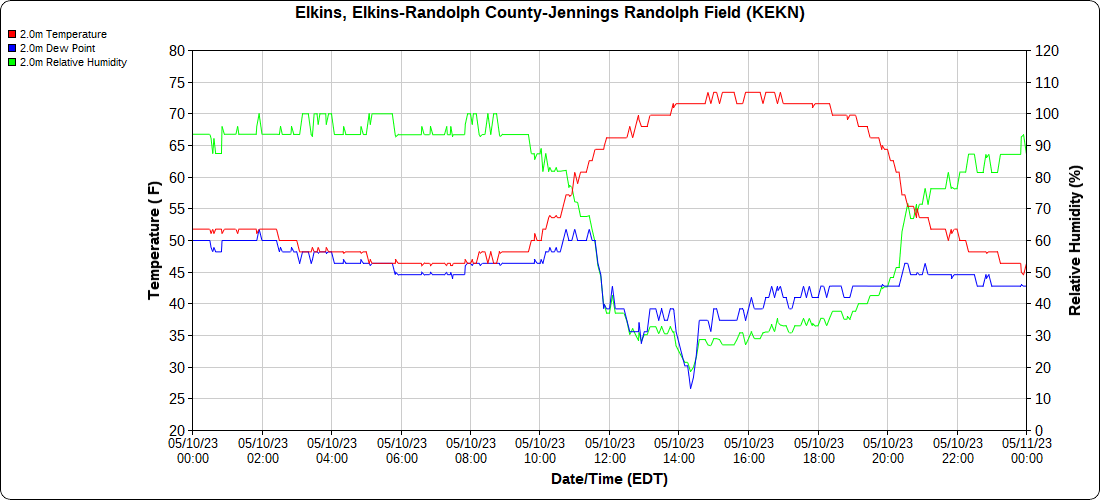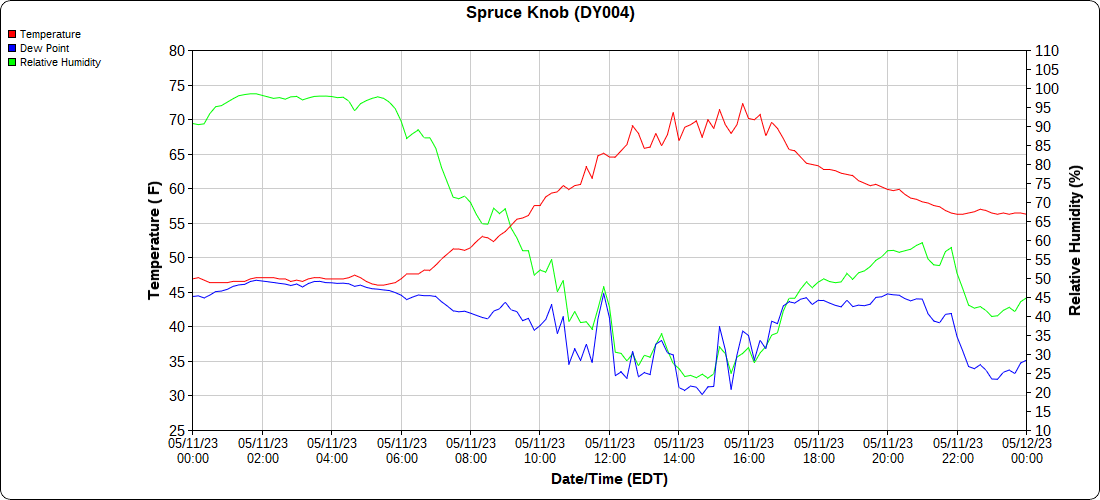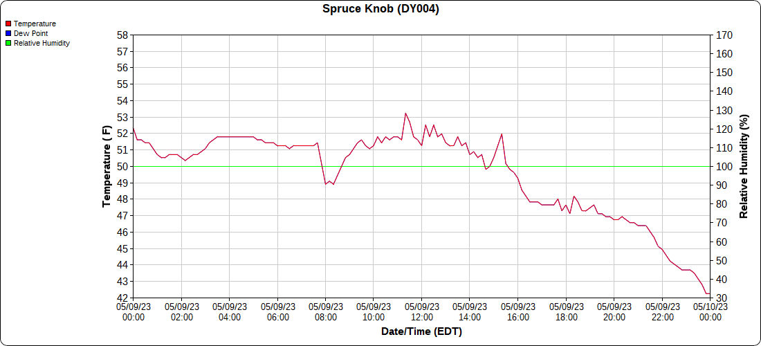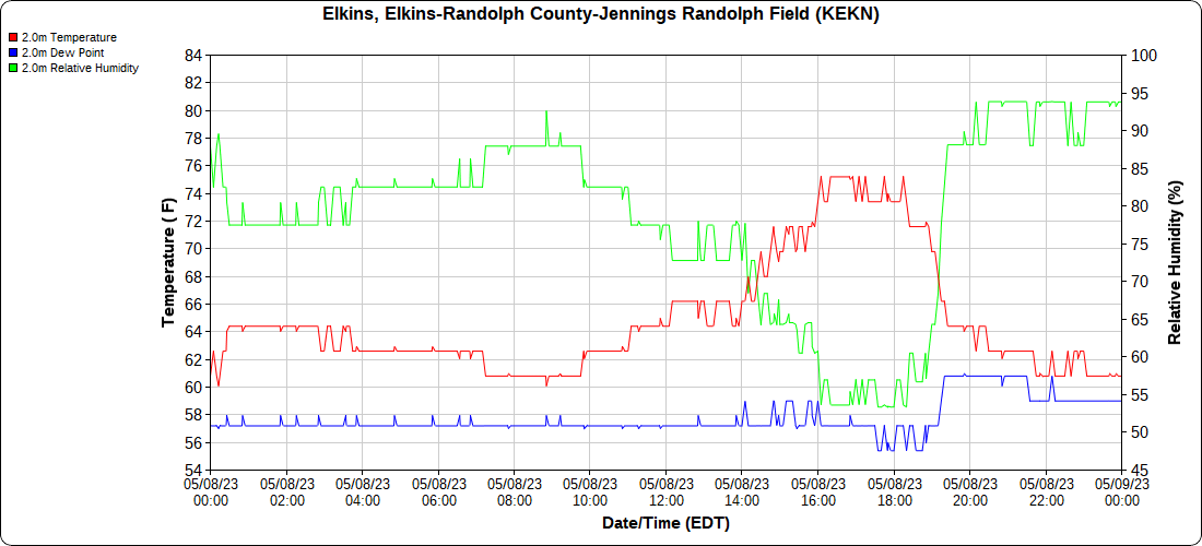 Dy007-Canaan Valley Refuge 3150′, Dy002-Cabin Mt at Bald Knob 4350′, Dy003-Cabin Mt-Western Sods 4035′, Dy004-Spruce Knob 4820′, Cvpw2-Climate Reference Network Canaan 3380′, KW99-Petersburg Grant County Airport 961, K2G4 Garrett County Airport 2933′, KCBE Cumberland Airport 774′, KEKN Elkins Airport 1985′, KMGW Morgantown Airport 1227′, PMN16-Mt.Davis 3038′, KDCA-Reagan National 15′, G1472 Snowshoe 4500′, F0183 Burkes Garden 3050′