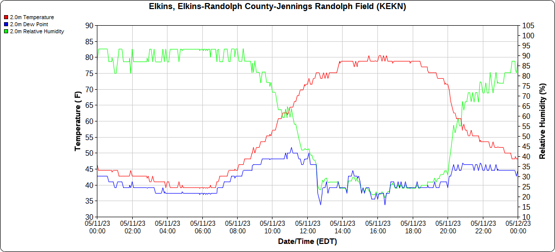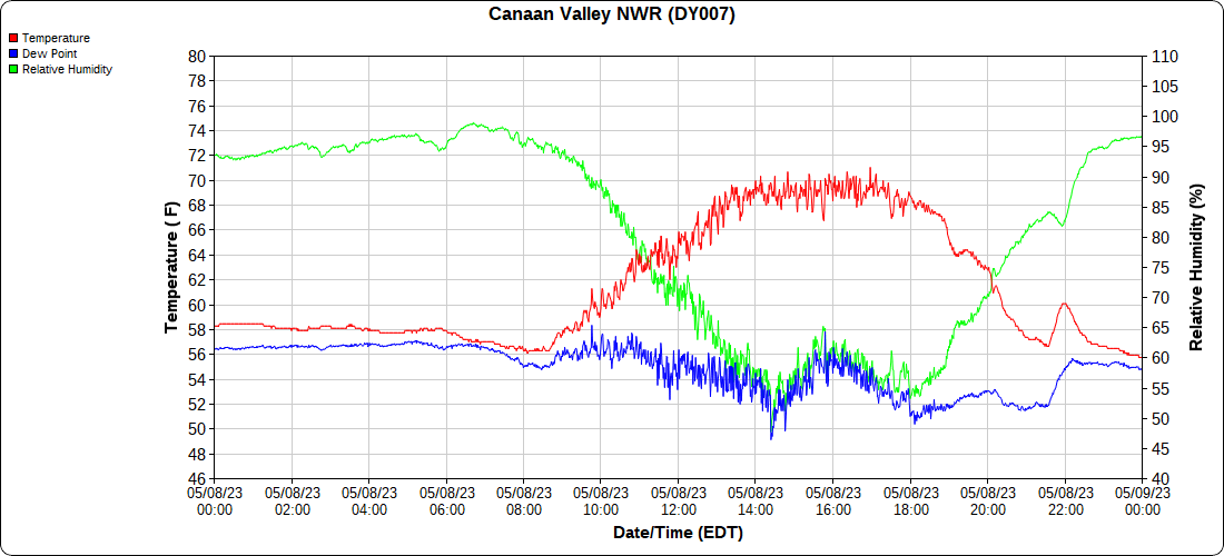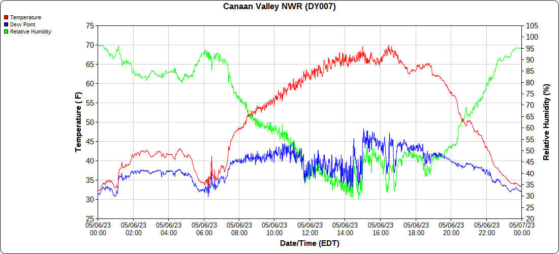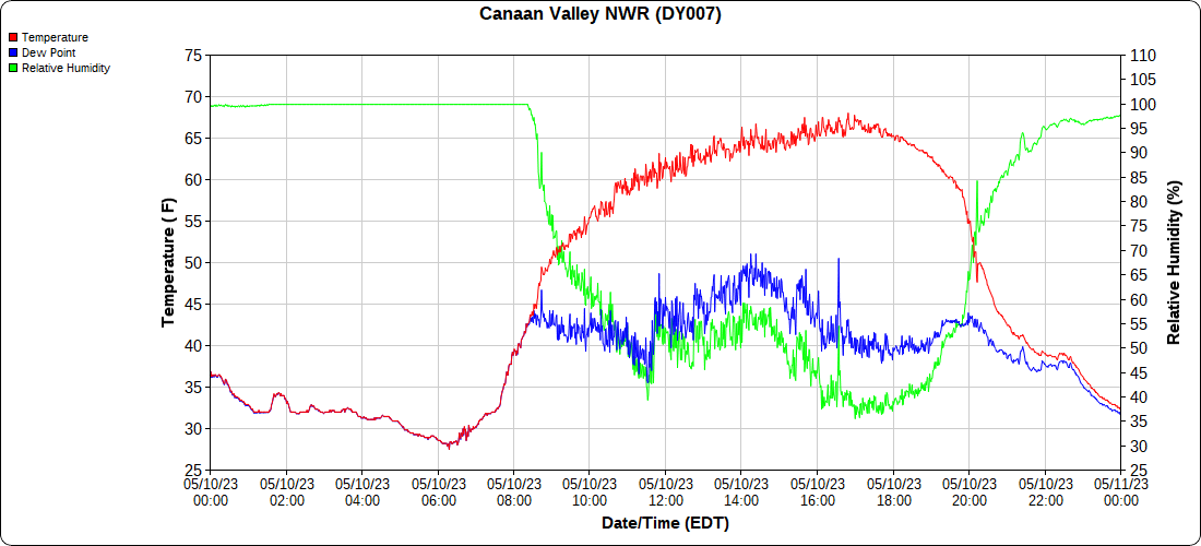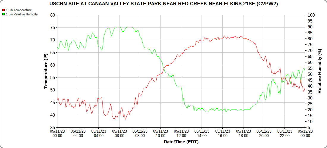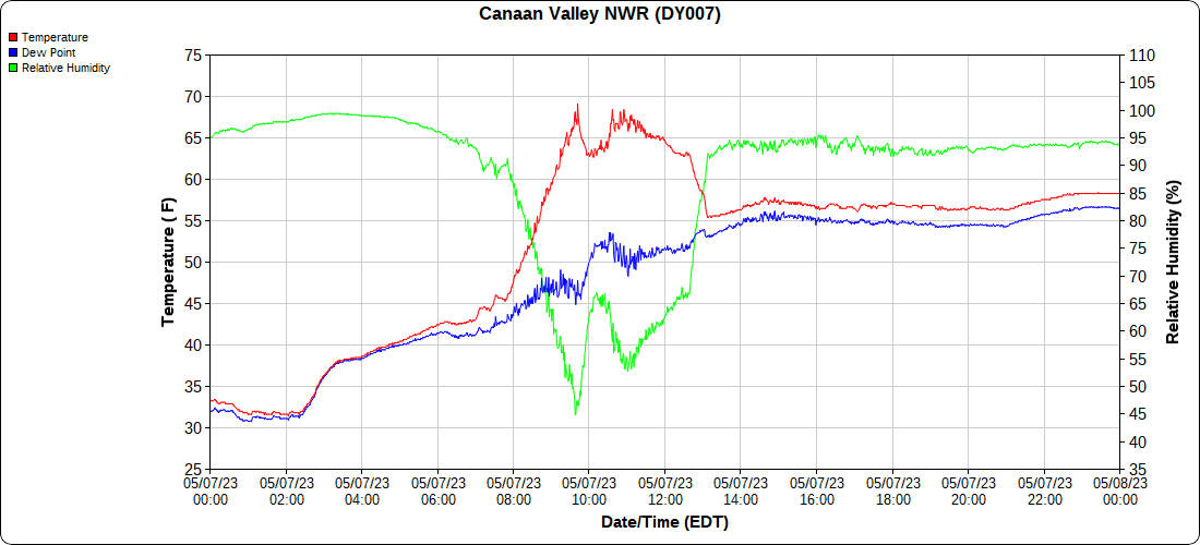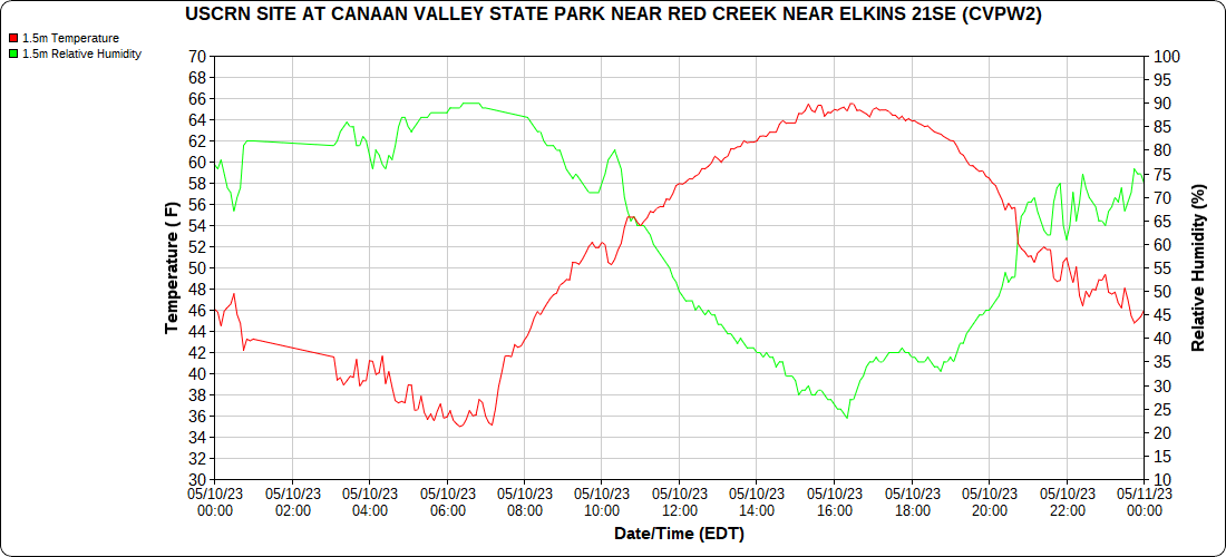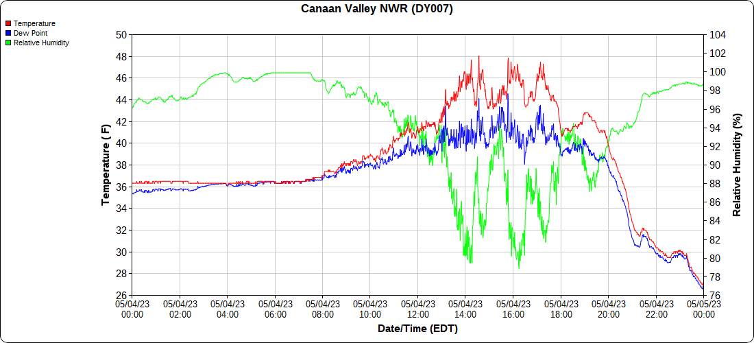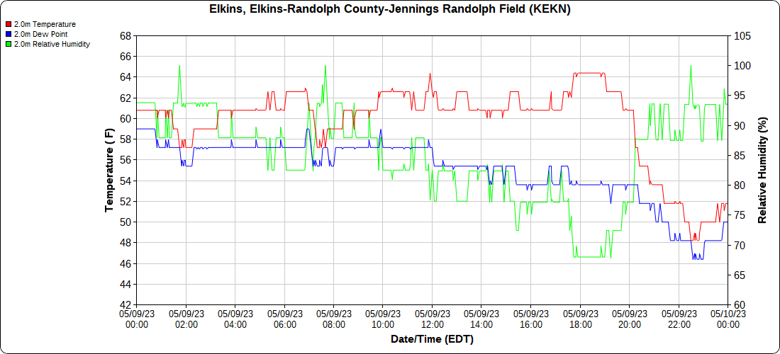 Dy007-Canaan Valley Refuge 3150′, Dy002-Cabin Mt at Bald Knob 4350′, Dy003-Cabin Mt-Western Sods 4035′, Dy004-Spruce Knob 4820′, Cvpw2-Climate Reference Network Canaan 3380′, KW99-Petersburg Grant County Airport 961, K2G4 Garrett County Airport 2933′, KCBE Cumberland Airport 774′, KEKN Elkins Airport 1985′, KMGW Morgantown Airport 1227′, PMN16-Mt.Davis 3038′, KDCA-Reagan National 15′, G1472 Snowshoe 4500′, F0183 Burkes Garden 3050′