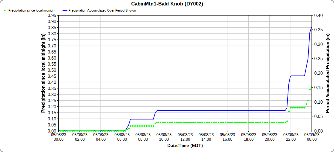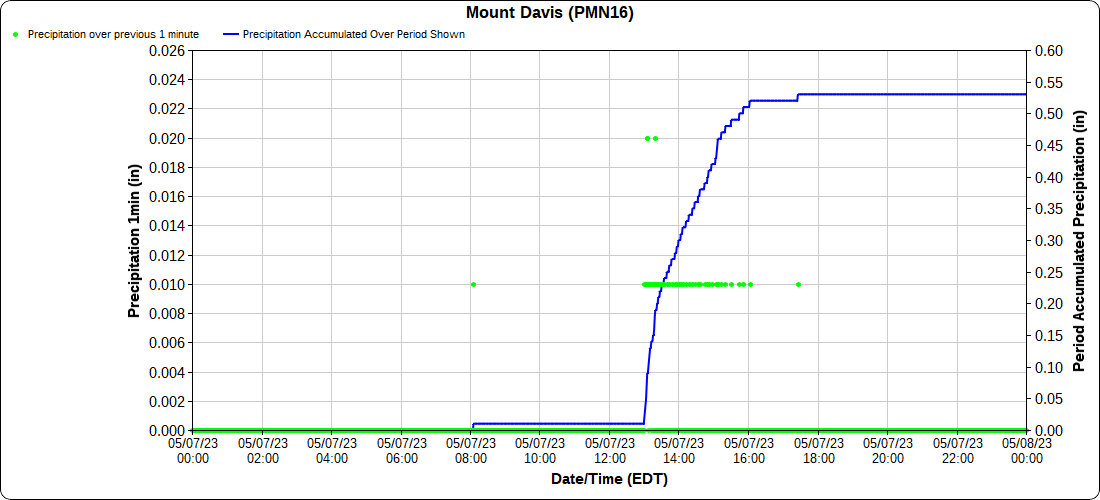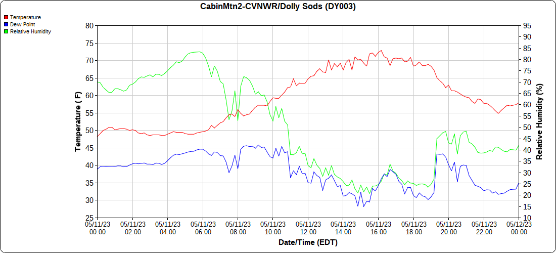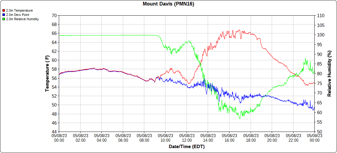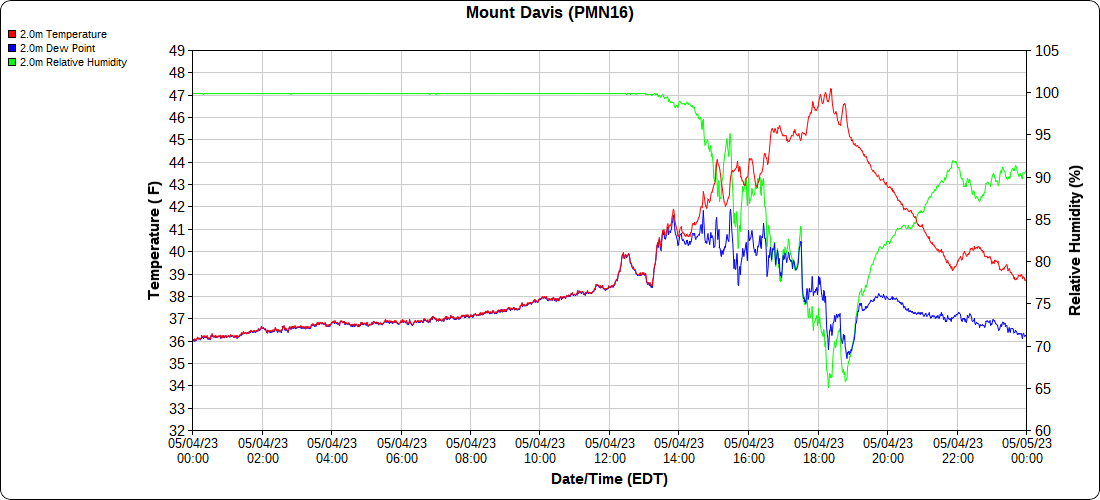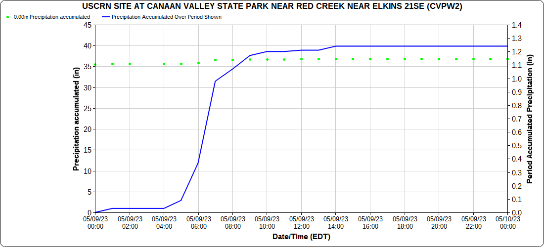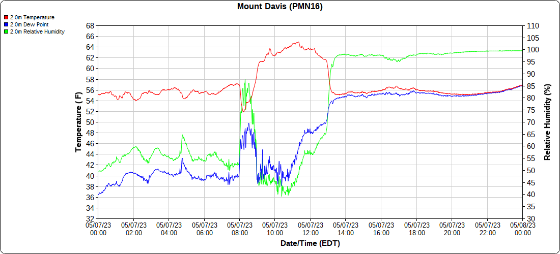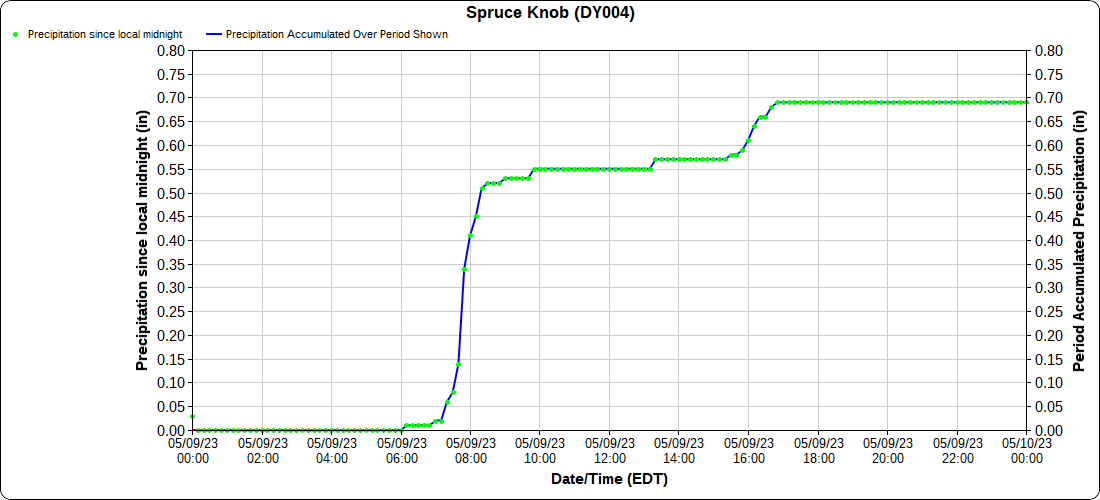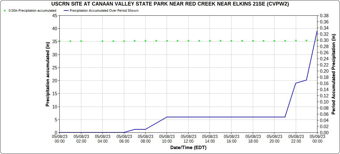 Dy007-Canaan Valley Refuge 3150′, Dy002-Cabin Mt at Bald Knob 4350′, Dy003-Cabin Mt-Western Sods 4035′, Dy004-Spruce Knob 4820′, Cvpw2-Climate Reference Network Canaan 3380′, KW99-Petersburg Grant County Airport 961, K2G4 Garrett County Airport 2933′, KCBE Cumberland Airport 774′, KEKN Elkins Airport 1985′, KMGW Morgantown Airport 1227′, PMN16-Mt.Davis 3038′, KDCA-Reagan National 15′, G1472 Snowshoe 4500′, F0183 Burkes Garden 3050′