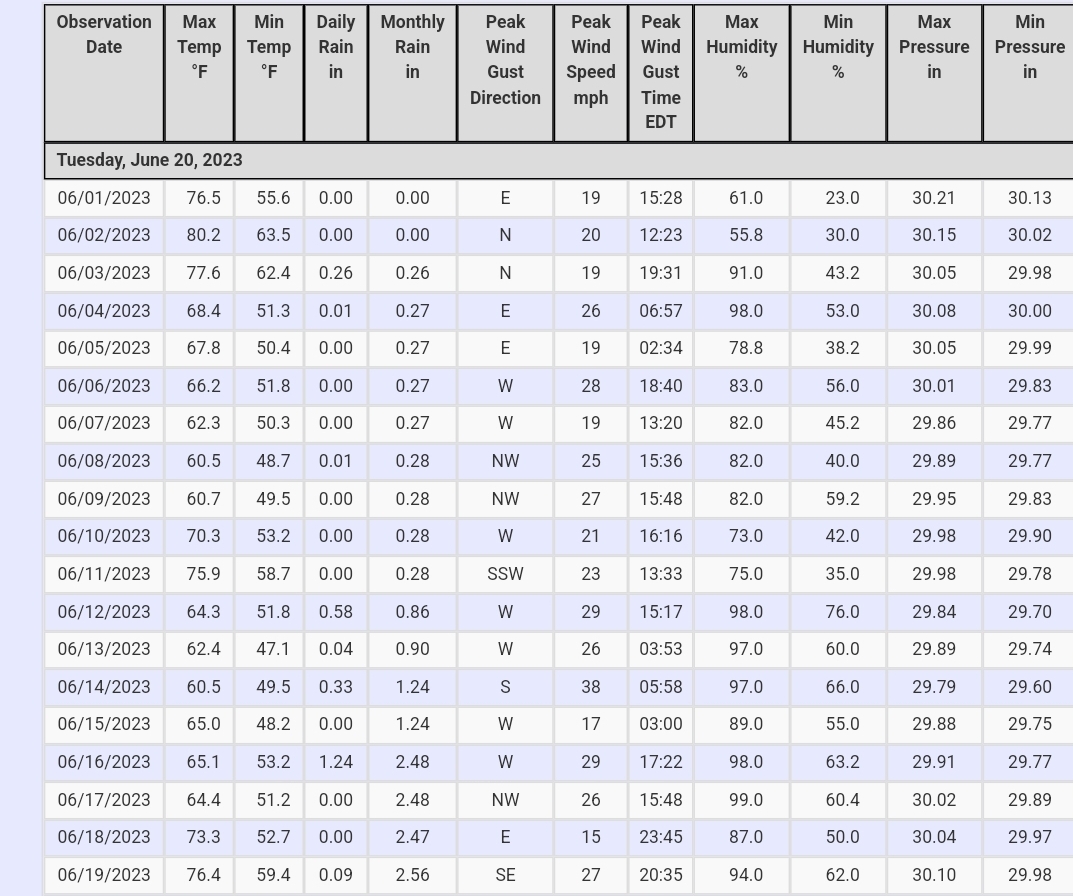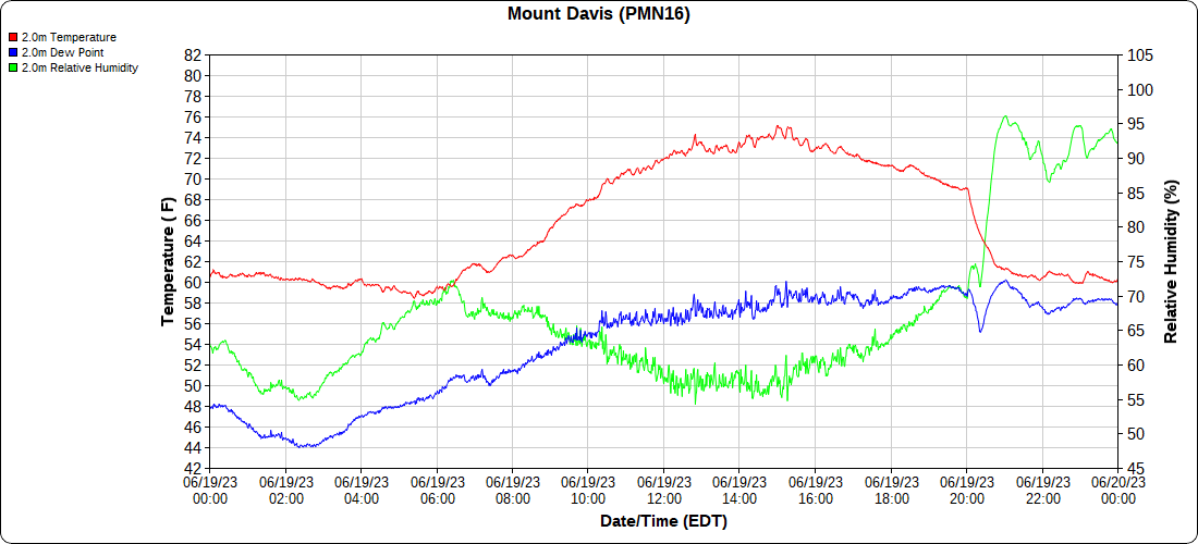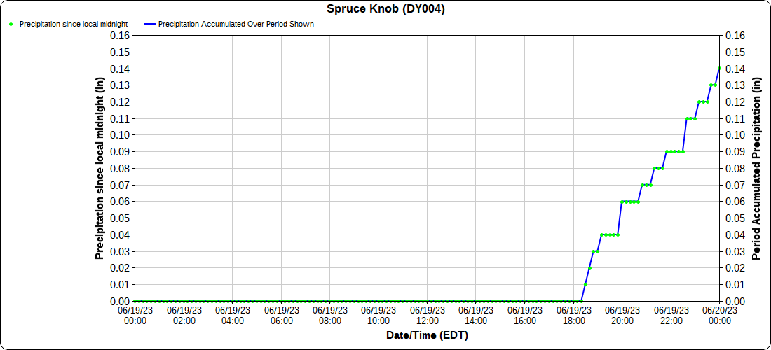 Dy007-Canaan Valley Refuge 3150′, Dy002-Cabin Mt at Bald Knob 4350′, Dy003-Cabin Mt-Western Sods 4035′, Dy004-Spruce Knob 4820′, Cvpw2-Climate Reference Network Canaan 3380′, KW99-Petersburg Grant County Airport 961, K2G4 Garrett County Airport 2933′, KCBE Cumberland Airport 774′, KEKN Elkins Airport 1985′, KMGW Morgantown Airport 1227′, PMN16-Mt.Davis 3038′, KDCA-Reagan National 15′, G1472 Snowshoe 4500′, F0183 Burkes Garden 3050′