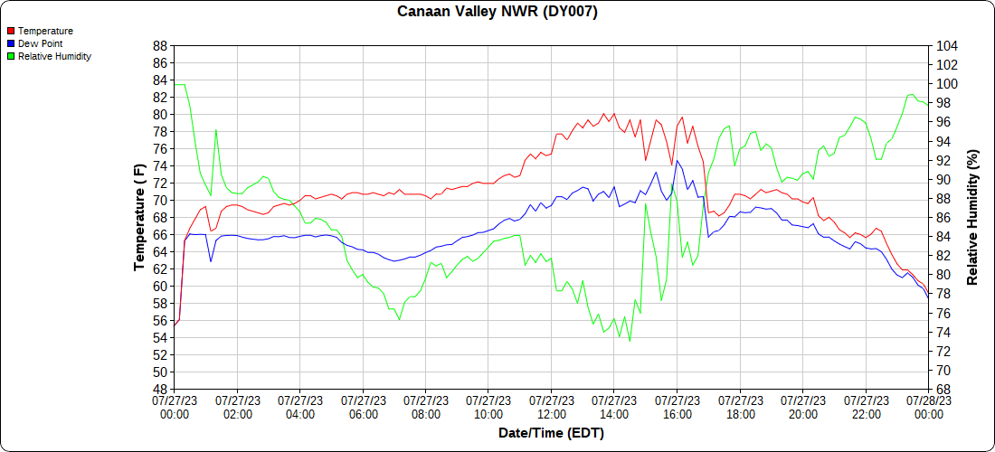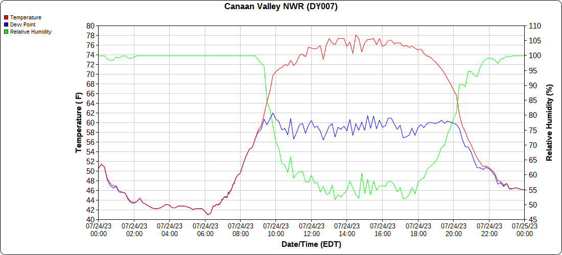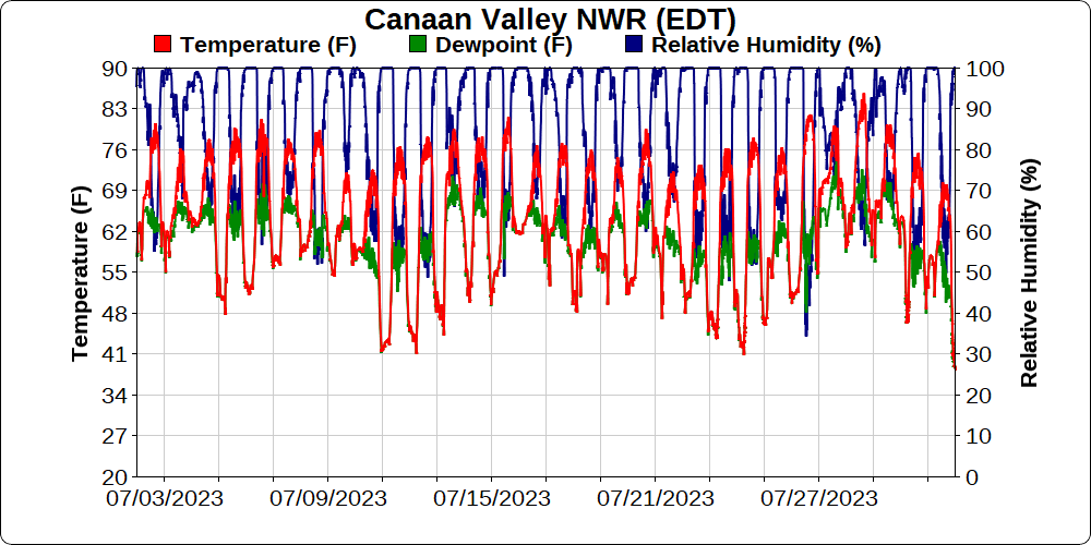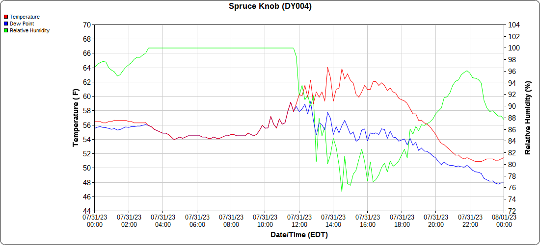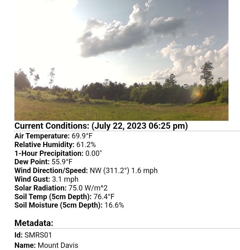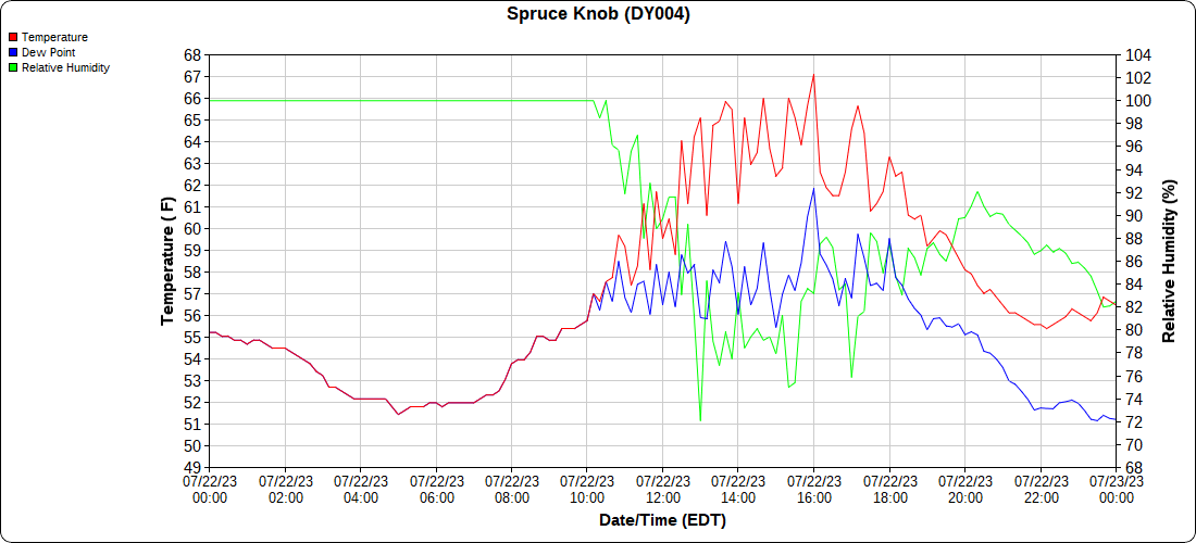 Dy007-Canaan Valley Refuge 3150′, Dy002-Cabin Mt at Bald Knob 4350′, Dy003-Cabin Mt-Western Sods 4035′, Dy004-Spruce Knob 4820′, Cvpw2-Climate Reference Network Canaan 3380′, KW99-Petersburg Grant County Airport 961, K2G4 Garrett County Airport 2933′, KCBE Cumberland Airport 774′, KEKN Elkins Airport 1985′, KMGW Morgantown Airport 1227′, PMN16-Mt.Davis 3038′, KDCA-Reagan National 15′, G1472 Snowshoe 4500′, F0183 Burkes Garden 3050′