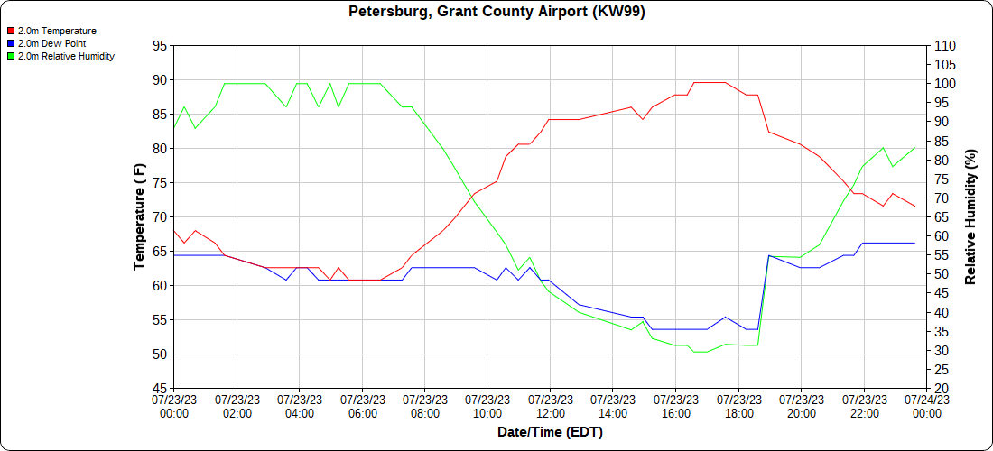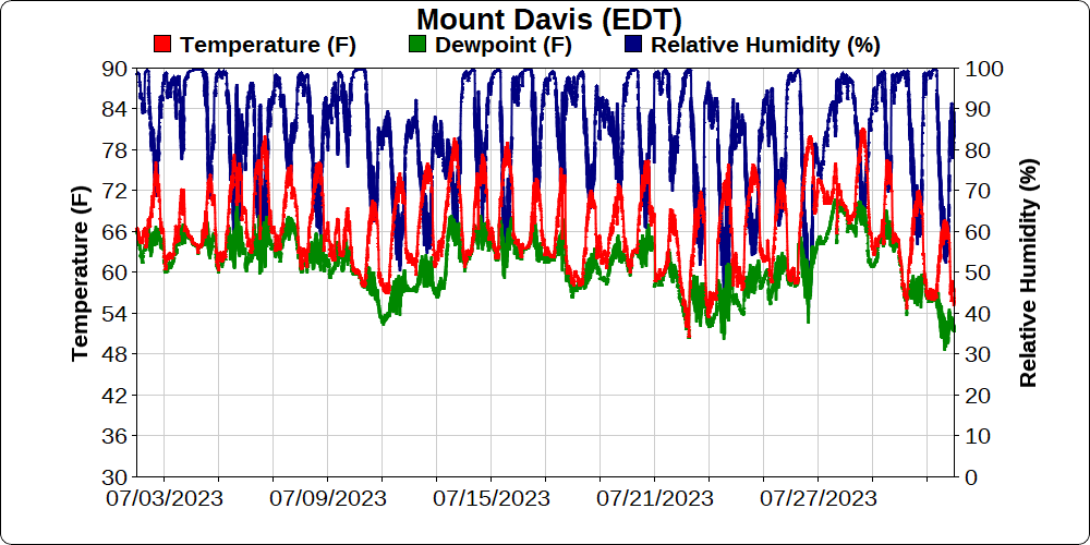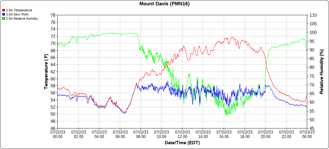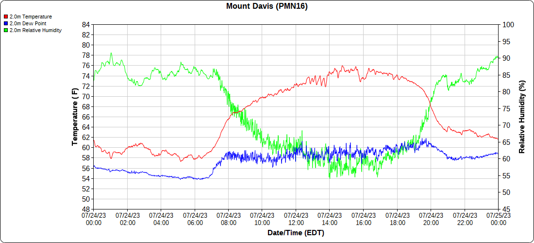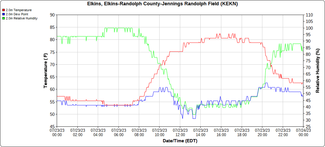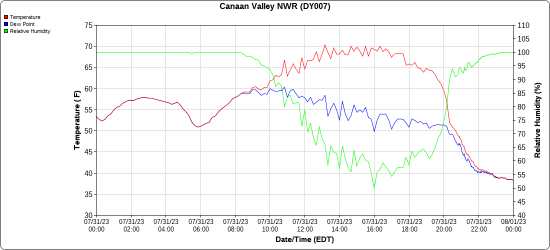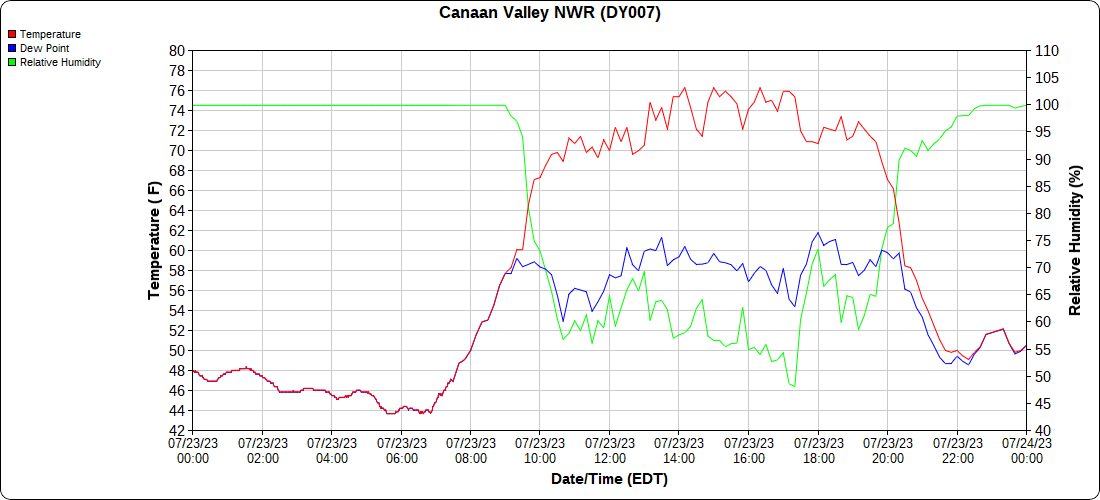 Dy007-Canaan Valley Refuge 3150′, Dy002-Cabin Mt at Bald Knob 4350′, Dy003-Cabin Mt-Western Sods 4035′, Dy004-Spruce Knob 4820′, Cvpw2-Climate Reference Network Canaan 3380′, KW99-Petersburg Grant County Airport 961, K2G4 Garrett County Airport 2933′, KCBE Cumberland Airport 774′, KEKN Elkins Airport 1985′, KMGW Morgantown Airport 1227′, PMN16-Mt.Davis 3038′, KDCA-Reagan National 15′, G1472 Snowshoe 4500′, F0183 Burkes Garden 3050′