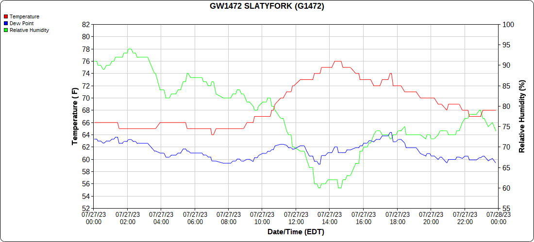 Showers last night, and pleasant almost fall like day today with clearing skies, few scattered clouds, low dewpoints