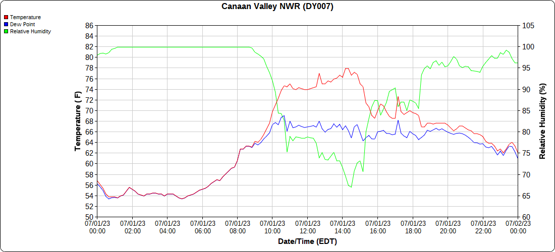 Dy007-Canaan Valley Refuge 3150′, Dy002-Cabin Mt at Bald Knob 4350′, Dy003-Cabin Mt-Western Sods 4035′, Dy004-Spruce Knob 4820′, Cvpw2-Climate Reference Network Canaan 3380′, KW99-Petersburg Grant County Airport 961, K2G4 Garrett County Airport 2933′, KCBE Cumberland Airport 774′, KEKN Elkins Airport 1985′, KMGW Morgantown Airport 1227′, PMN16-Mt.Davis 3038′, KDCA-Reagan National 15′, G1472 Snowshoe 4500′, F0183 Burkes Garden 3050′