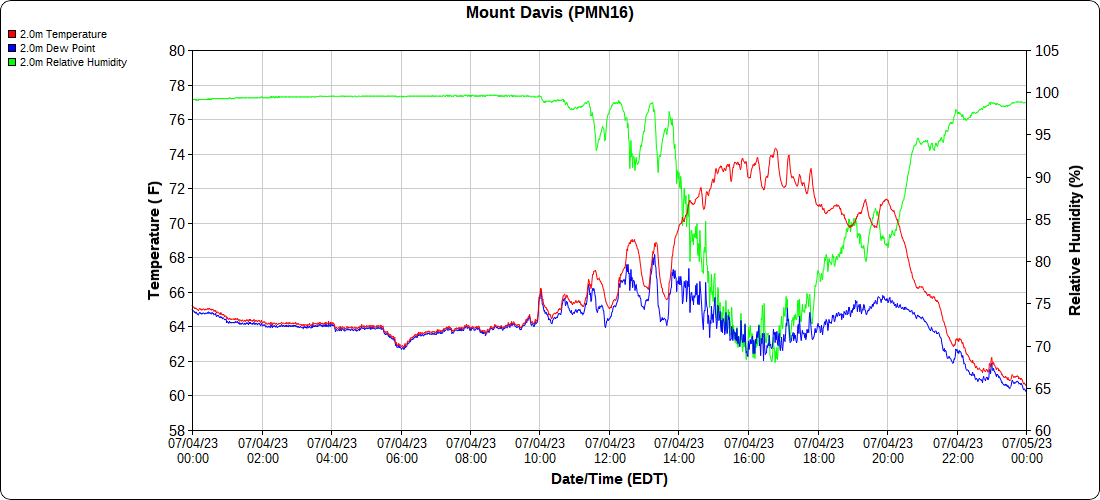 Dy007-Canaan Valley Refuge 3150′, Dy002-Cabin Mt at Bald Knob 4350′, Dy003-Cabin Mt-Western Sods 4035′, Dy004-Spruce Knob 4820′, Cvpw2-Climate Reference Network Canaan 3380′, KW99-Petersburg Grant County Airport 961, K2G4 Garrett County Airport 2933′, KCBE Cumberland Airport 774′, KEKN Elkins Airport 1985′, KMGW Morgantown Airport 1227′, PMN16-Mt.Davis 3038′, KDCA-Reagan National 15′, G1472 Snowshoe 4500′, F0183 Burkes Garden 3050′