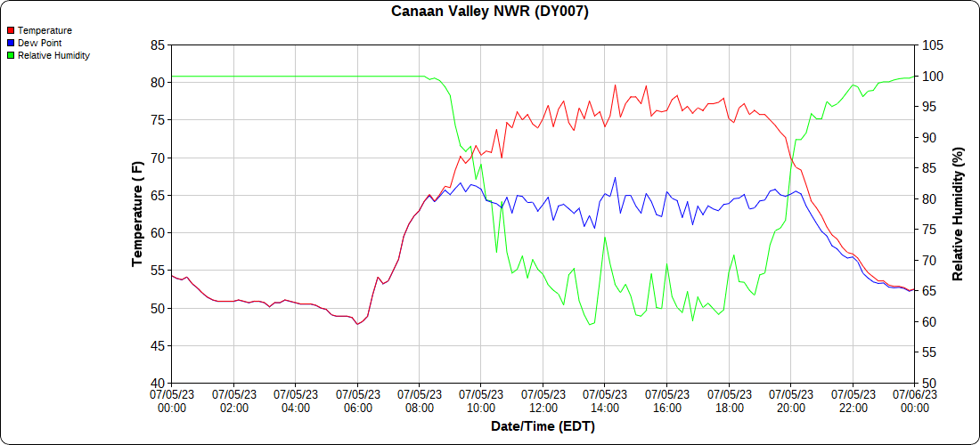 Dy007-Canaan Valley Refuge 3150′, Dy002-Cabin Mt at Bald Knob 4350′, Dy003-Cabin Mt-Western Sods 4035′, Dy004-Spruce Knob 4820′, Cvpw2-Climate Reference Network Canaan 3380′, KW99-Petersburg Grant County Airport 961, K2G4 Garrett County Airport 2933′, KCBE Cumberland Airport 774′, KEKN Elkins Airport 1985′, KMGW Morgantown Airport 1227′, PMN16-Mt.Davis 3038′, KDCA-Reagan National 15′, G1472 Snowshoe 4500′, F0183 Burkes Garden 3050′